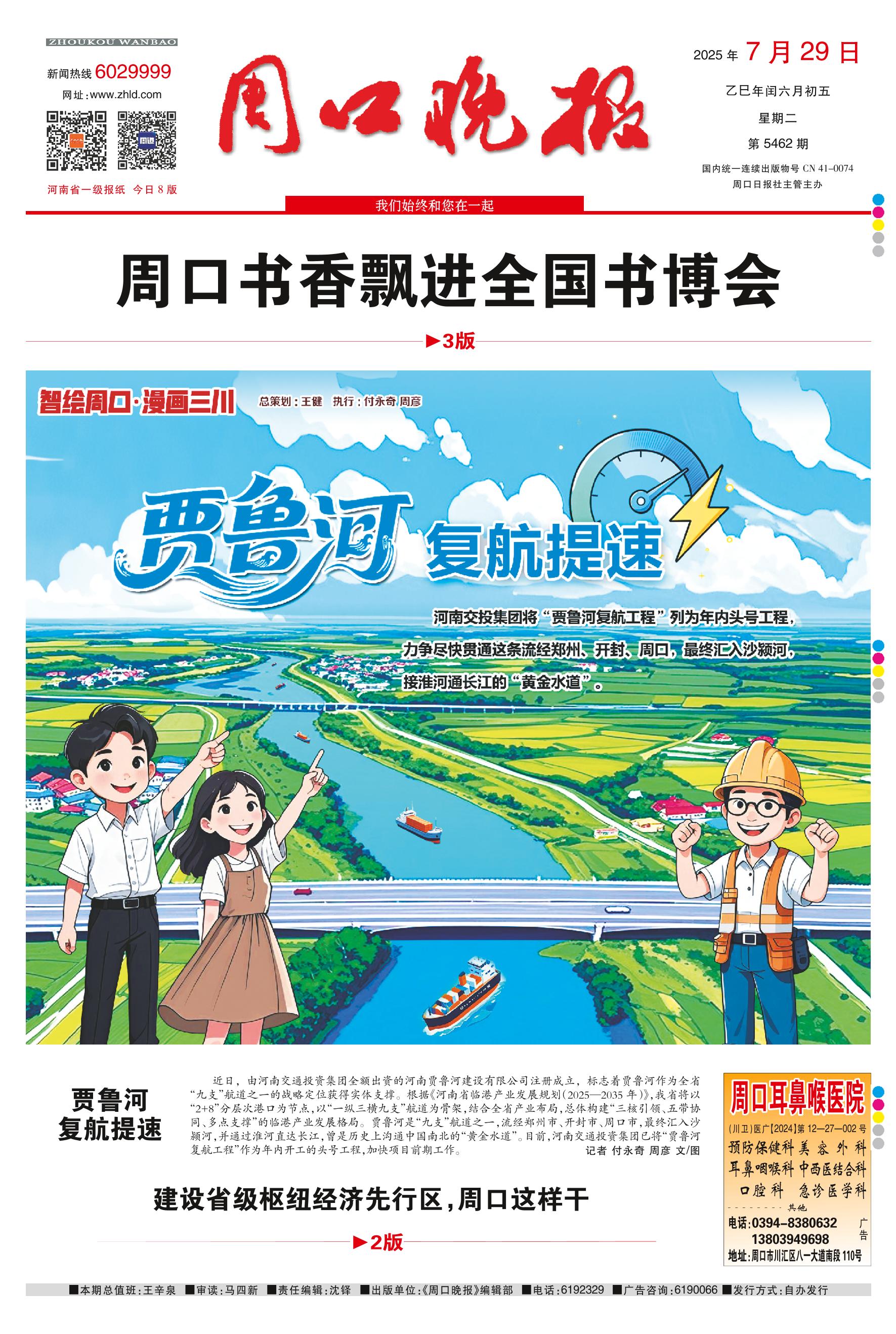 <div style='font-size: 22px!important;line-height: 34px!important;text-align: justify!important;color: #000!important'>贾鲁河 复航提速</div><div style='font-size: 14px!important;line-height: 22px!important;text-align: left!important;color: #777!important;margin-top: 20px;'>周口晚报  2025-07-29</div><div><img id='paperImg' style='max-width: 100%;height: auto' src='//img.founderfx.cn/epaper/202507/28/cbb51d284bbd4bacac9a316f73e4e24c/1.jpg' alt='' class='page-img'/></div><div style='font-size: 14px!important;line-height: 22px!important;text-align: center!important;color: #777!important;'><img src='//img.founderfx.cn/epaper/202507/28/cbb51d284bbd4bacac9a316f73e4e24c/01/136fb5cec40c95b7b0e301352c48a883_s.jpg'style='display: block!important;margin: auto!important;max-width: 100%!important;'/></div><p> 近日,由河南交通投资集团全额出资的河南贾鲁河建设有限公司注册成立,标志着贾鲁河作为全省“九支”航道之一的战略定位获得实体支撑。根据《河南省临港产业发展规划(2025—2035年)》,我省将以“2+8”分层次港口为节点,以“一纵三横九支”航道为骨架,结合全省产业布局,总体构建“三核引领、五带协同、多点支撑”的临港产业发展格局。贾鲁河是“九支”航道之一,流经郑州市、开封市、周口市,最终汇入沙颍河,并通过淮河直达长江,曾是历史上沟通中国南北的“黄金水道”。目前,河南交通投资集团已将“贾鲁河复航工程”作为年内开工的头号工程,加快项目前期工作。 记者 付永奇 周彦 文/图</p>