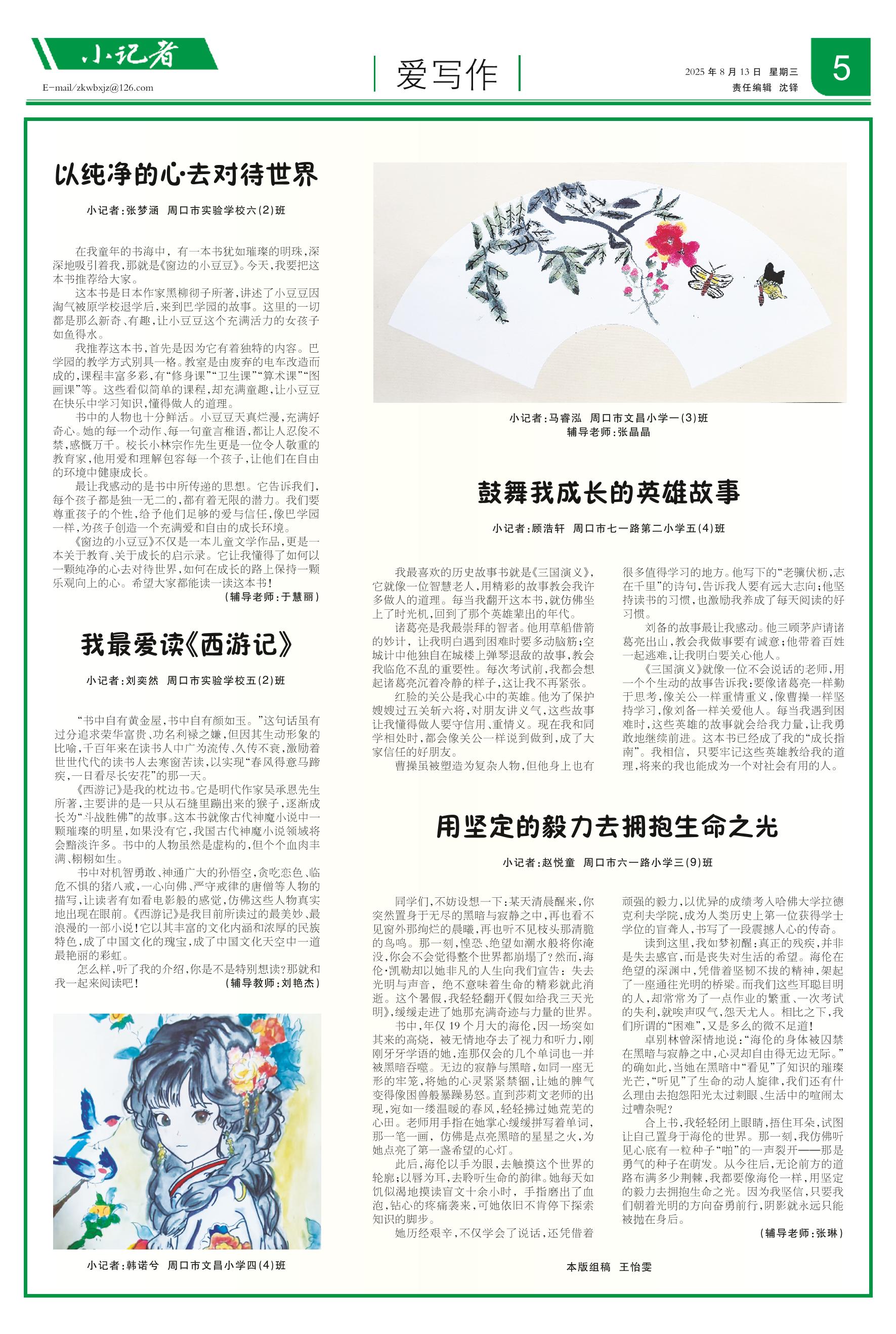 <div style='font-size: 22px!important;line-height: 34px!important;text-align: justify!important;color: #000!important'>鼓舞我成长的英雄故事</div><div style='font-size: 14px!important;line-height: 22px!important;text-align: left!important;color: #777!important;margin-top: 20px;'>周口晚报  2025-08-13</div><div><img id='paperImg' style='max-width: 100%;height: auto' src='//img.founderfx.cn/epaper/202508/13/231c342dd3594fb389b4a2a1e97937e0/5.jpg' alt='' class='page-img'/></div><p> 小记者:顾浩轩 周口市七一路第二小学五(4)班</p><p> 我最喜欢的历史故事书就是《三国演义》,它就像一位智慧老人,用精彩的故事教会我许多做人的道理。每当我翻开这本书,就仿佛坐上了时光机,回到了那个英雄辈出的年代。</p><p> 诸葛亮是我最崇拜的智者。他用草船借箭的妙计,让我明白遇到困难时要多动脑筋;空城计中他独自在城楼上弹琴退敌的故事,教会我临危不乱的重要性。每次考试前,我都会想起诸葛亮沉着冷静的样子,这让我不再紧张。</p><p> 红脸的关公是我心中的英雄。他为了保护嫂嫂过五关斩六将,对朋友讲义气,这些故事让我懂得做人要守信用、重情义。现在我和同学相处时,都会像关公一样说到做到,成了大家信任的好朋友。</p><p> 曹操虽被塑造为复杂人物,但他身上也有很多值得学习的地方。他写下的“老骥伏枥,志在千里”的诗句,告诉我人要有远大志向;他坚持读书的习惯,也激励我养成了每天阅读的好习惯。</p><p> 刘备的故事最让我感动。他三顾茅庐请诸葛亮出山,教会我做事要有诚意;他带着百姓一起逃难,让我明白要关心他人。</p><p> 《三国演义》就像一位不会说话的老师,用一个个生动的故事告诉我:要像诸葛亮一样勤于思考,像关公一样重情重义,像曹操一样坚持学习,像刘备一样关爱他人。每当我遇到困难时,这些英雄的故事就会给我力量,让我勇敢地继续前进。这本书已经成了我的“成长指南”。我相信,只要牢记这些英雄教给我的道理,将来的我也能成为一个对社会有用的人。</p>
