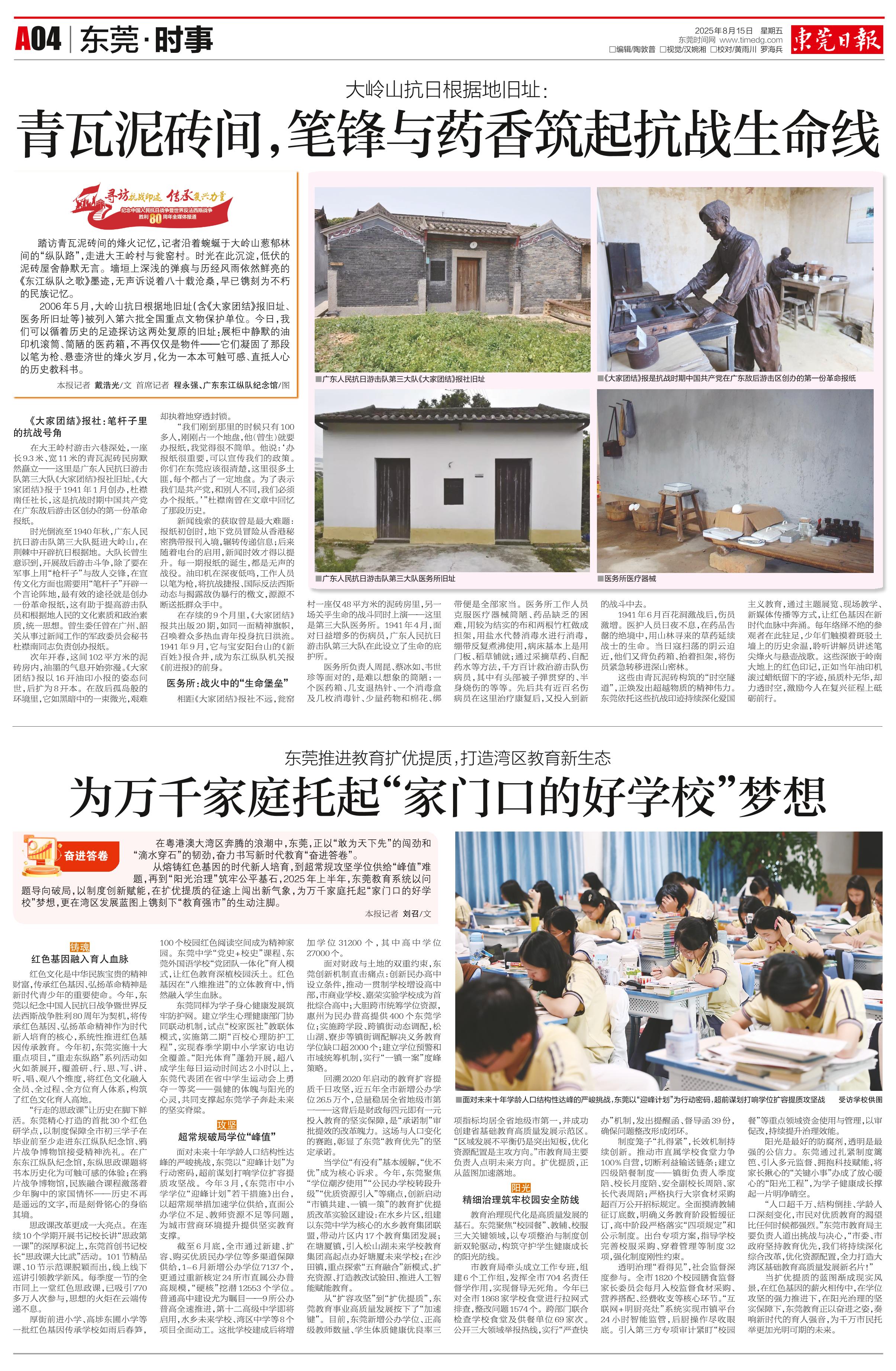 <div style='font-size: 16px!important;line-height: 28px!important;text-align: justify;color: #777!important;'>东莞推进教育扩优提质,打造湾区教育新生态</div><div style='font-size: 22px!important;line-height: 34px!important;text-align: justify!important;color: #000!important'>为万千家庭托起“家门口的好学校”梦想</div><div style='font-size: 14px!important;line-height: 22px!important;text-align: left!important;color: #777!important;margin-top: 20px;'>东莞日报  本报记者 刘召/文  2025-08-15</div><div><img id='paperImg' style='max-width: 100%;height: auto' src='//img.founderfx.cn/epaper/202508/15/b326033875304a9896f864f13699b2bf/4.jpg' alt='' class='page-img'/></div><div style='font-size: 14px!important;line-height: 22px!important;text-align: center!important;color: #777!important;'><img src='//img.founderfx.cn/epaper/202508/15/b326033875304a9896f864f13699b2bf/A04/19659378_sm1_1755174394566_s.jpg'style='display: block!important;margin: auto!important;max-width: 100%!important;'/> ■面对未来十年学龄人口结构性达峰的严峻挑战,东莞以“迎峰计划”为行动密码,超前谋划打响学位扩容提质攻坚战 受访学校供图</div><p> 在粤港澳大湾区奔腾的浪潮中,东莞,正以“敢为天下先”的闯劲和“滴水穿石”的韧劲,奋力书写新时代教育“奋进答卷”。</p><p> 从熔铸红色基因的时代新人培育,到超常规攻坚学位供给“峰值”难题,再到“阳光治理”筑牢公平基石,2025年上半年,东莞教育系统以问题导向破局,以制度创新赋能,在扩优提质的征途上闯出新气象,为万千家庭托起“家门口的好学校”梦想,更在湾区发展蓝图上镌刻下“教育强市”的生动注脚。</p><p> </p><p> 铸魂</p><p> 红色基因融入育人血脉</p><p> 红色文化是中华民族宝贵的精神财富,传承红色基因、弘扬革命精神是新时代青少年的重要使命。今年,东莞以纪念中国人民抗日战争暨世界反法西斯战争胜利80周年为契机,将传承红色基因、弘扬革命精神作为时代新人培育的核心,系统性推进红色基因传承教育。今年初,东莞实施十大重点项目,“重走东纵路”系列活动如火如荼展开,覆盖研、行、思、写、讲、听、唱、观八个维度,将红色文化融入全员、全过程、全方位育人体系,构筑了红色文化育人高地。</p><p> “行走的思政课”让历史在脚下鲜活。东莞精心打造的首批30个红色研学点,以制度保障全市初三学子在毕业前至少走进东江纵队纪念馆、鸦片战争博物馆接受精神洗礼。在广东东江纵队纪念馆,东纵思政课题将书本历史化为可触可感的体验;在鸦片战争博物馆,民族融合课程激荡着少年胸中的家国情怀——历史不再是遥远的文字,而是刻骨铭心的身临其境。</p><p> 思政课改革更成一大亮点。在连续10个学期开展书记校长讲“思政第一课”的深厚积淀上,东莞首创书记校长“思政课大比武”活动。101节精品课、10节示范课脱颖而出,线上线下巡讲引领教学新风。每季度一节的全市同上一堂红色思政课,已吸引770多万人次参与,思想的火炬在云端传递不息。</p><p> 厚街前进小学、高埗东圃小学等一批红色基因传承学校如雨后春笋,100个校园红色阅读空间成为精神家园。东莞中学“党史+校史”课程、东莞外国语学校“党团队一体化”育人模式,让红色教育深植校园沃土。红色基因在“八维推进”的立体教育中,悄然融入学生血脉。</p><p> 东莞同样为学子身心健康发展筑牢防护网。建立学生心理健康部门协同联动机制,试点“校家医社”教联体模式,实施第二期“百校心理防护工程”,实现春季学期中小学家访电访全覆盖。“阳光体育”蓬勃开展,超八成学生每日运动时间达2小时以上,东莞代表团在省中学生运动会上勇夺一等奖——强健的体魄与阳光的心灵,共同支撑起东莞学子奔赴未来的坚实脊梁。</p><p> 攻坚</p><p> 超常规破局学位“峰值”</p><p> 面对未来十年学龄人口结构性达峰的严峻挑战,东莞以“迎峰计划”为行动密码,超前谋划打响学位扩容提质攻坚战。今年3月,《东莞市中小学学位“迎峰计划”若干措施》出台,以超常规举措加速学位供给,直面公办学位不足、教师资源不足等问题,为城市营商环境提升提供坚实教育支撑。</p><p> 截至6月底,全市通过新建、扩容、购买优质民办学位等多渠道保障供给,1-6月新增公办学位7137个,更通过重新核定24所市直属公办普高规模,“硬核”挖潜12553个学位。普通高中建设尤为瞩目——9所公办普高全速推进,第十二高级中学即将启用,水乡未来学校、湾区中学等8个项目全面动工。这批学校建成后将增加学位31200个,其中高中学位27000个。</p><p> 面对财政与土地的双重约束,东莞创新机制直击痛点:创新民办高中设立条件,推动一贯制学校增设高中部,市商业学校、嘉荣实验学校成为首批综合高中;大胆跨市统筹学位资源,惠州为民办普高提供400个东莞学位;实施跨学段、跨镇街动态调配,松山湖、寮步等镇街调配解决义务教育学位缺口超2000个;建立学位预警和市域统筹机制,实行“一镇一案”度峰策略。</p><p> 回溯2020年启动的教育扩容提质千日攻坚,近五年全市新增公办学位26.5万个,总量稳居全省地级市第一——这背后是财政每四元即有一元投入教育的坚实保障,是“承诺制”审批提效的改革魄力。这场与人口变化的赛跑,彰显了东莞“教育优先”的坚定承诺。</p><p> 当学位“有没有”基本缓解,“优不优”成为核心诉求。今年,东莞聚焦“学位潮汐使用”“公民办学