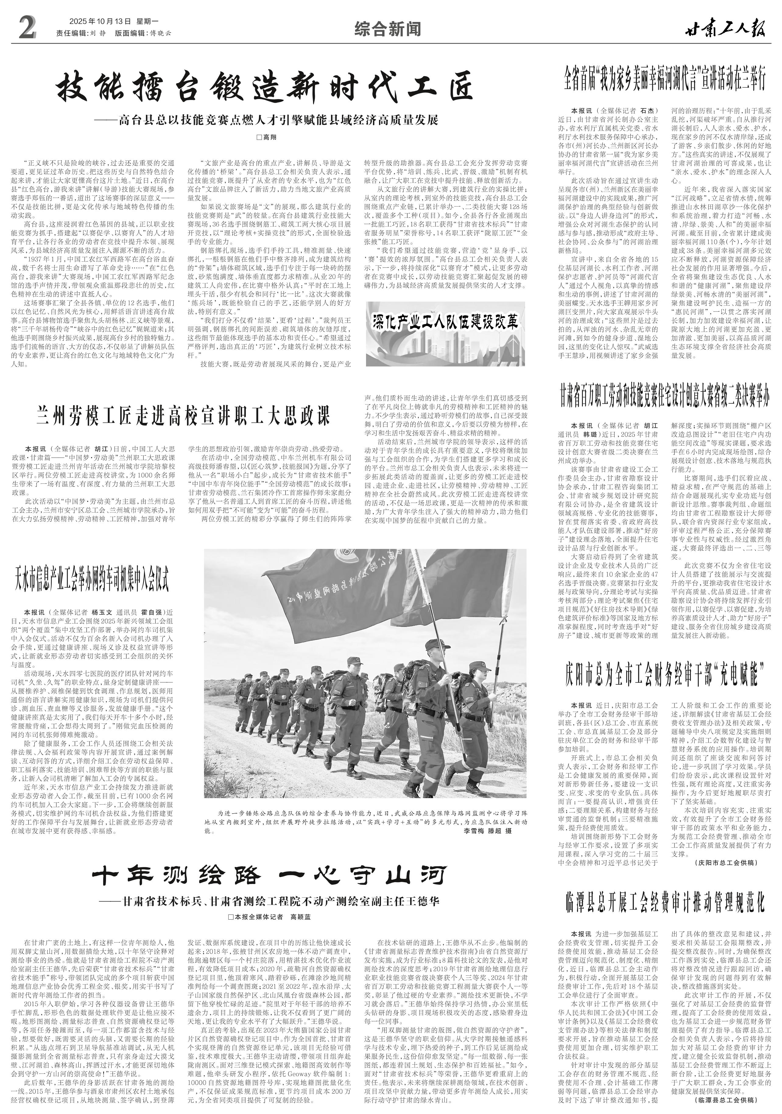 <div style='font-size: 22px!important;line-height: 34px!important;text-align: justify!important;color: #000!important'>兰州劳模工匠走进高校宣讲职工大思政课</div><div style='font-size: 14px!important;line-height: 22px!important;text-align: left!important;color: #777!important;margin-top: 20px;'>甘肃工人报  2025-10-13</div><div><img id='paperImg' style='max-width: 100%;height: auto' src='//img.founderfx.cn/epaper/202510/13/fd4fbf2f1d934c67a8854c73aa38aa3b/2.jpg' alt='' class='page-img'/></div><p>本报讯 (全媒体记者 胡江)日前,中国工人大思政课·甘肃篇——“中国梦·劳动美”兰州职工大思政课暨劳模工匠走进兰州青年活动在兰州城市学院培黎校区举行。两位劳模工匠走进高校讲堂,为1000余名师生带来了一场有温度、有深度、有力量的兰州职工大思政课。</p><p>此次活动以“中国梦·劳动美”为主题,由兰州市总工会主办,兰州市安宁区总工会、兰州城市学院承办,旨在大力弘扬劳模精神、劳动精神、工匠精神,加强对青年学生的思想政治引领,激励青年崇尚劳动、热爱劳动。</p><p>在活动中,全国劳动模范、中车兰州机车有限公司高级技师潘春望,以《匠心筑梦,技能报国》为题,分享了他从一名“职场小白”起步,成长为“甘肃省技术能手”“中国中车青年岗位能手”“全国劳动模范”的成长故事;甘肃省劳动模范、兰石集团冷作工首席操作师朱家彪分享了他从一名普通工人到首席工匠的奋斗历程,讲述他如何用双手把“不可能”变为“可能”的奋斗历程。</p><p>两位劳模工匠的精彩分享赢得了师生们的阵阵掌声。他们质朴而生动的讲述,让青年学生们真切感受到了在平凡岗位上铸就非凡的劳模精神和工匠精神的魅力。不少学生表示,通过聆听劳模们的故事,自己深受鼓舞,明白了劳动的价值和意义,今后要以劳模为榜样,在学习和生活中发扬艰苦奋斗、精益求精的精神。</p><p>活动结束后,兰州城市学院的领导表示,这样的活动对于青年学生的成长具有重要意义,学校将继续加强与工会组织的合作,为学生们搭建更多学习和成长的平台。兰州市总工会相关负责人也表示,未来将进一步拓展此类活动的覆盖面,让更多的劳模工匠走进校园、走进企业、走进社区,让劳模精神、劳动精神、工匠精神在全社会蔚然成风。此次劳模工匠走进高校讲堂的活动,不仅是一场思政课,更是一次精神的传承和激励,为广大青年学生注入了强大的精神动力,助力他们在实现中国梦的征程中贡献自己的力量。</p>