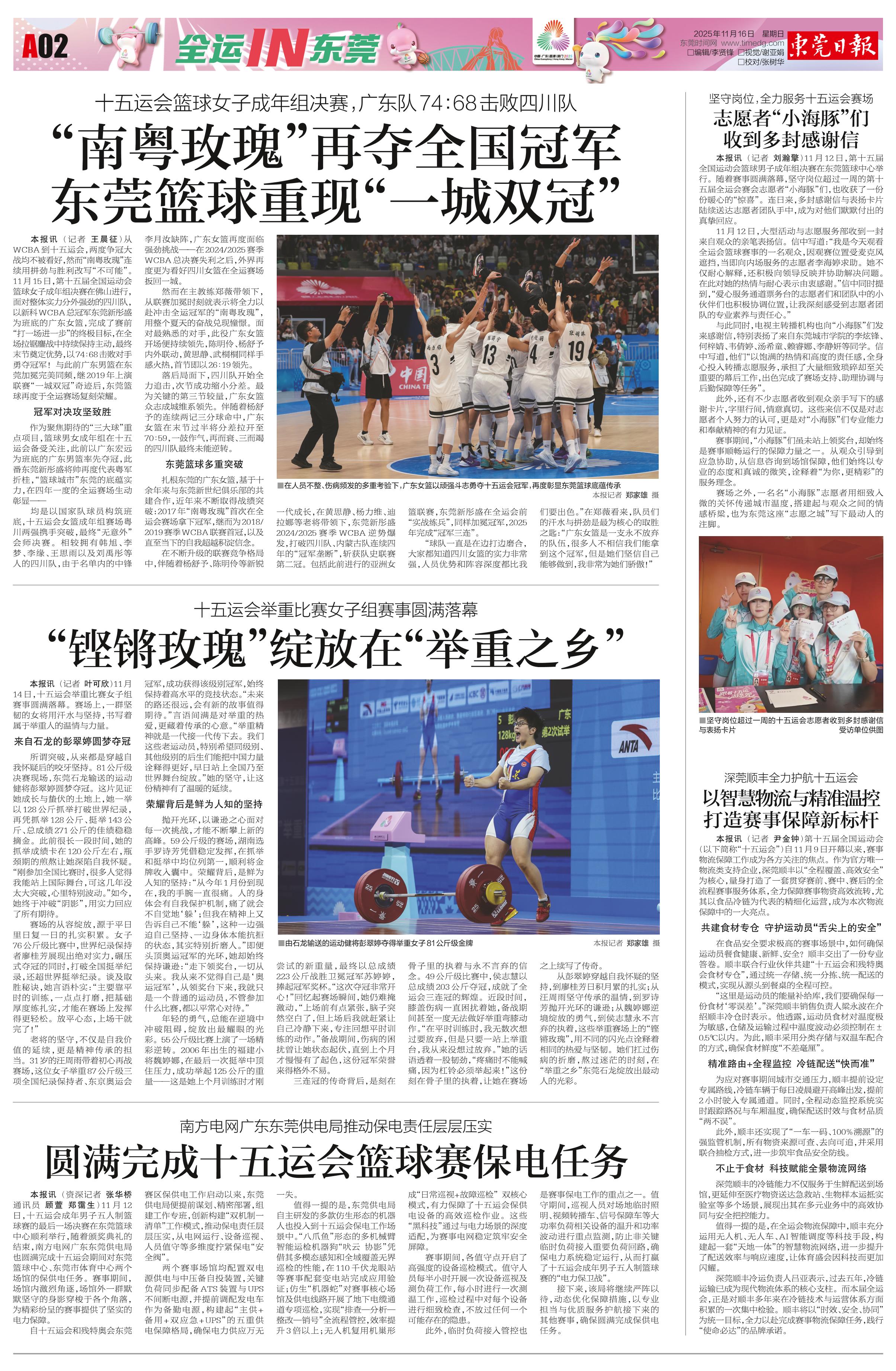 <div style='font-size: 16px!important;line-height: 28px!important;text-align: justify;color: #777!important;'>南方电网广东东莞供电局推动保电责任层层压实</div><div style='font-size: 22px!important;line-height: 34px!important;text-align: justify!important;color: #000!important'>圆满完成十五运会篮球赛保电任务</div><div style='font-size: 14px!important;line-height: 22px!important;text-align: left!important;color: #777!important;margin-top: 20px;'>东莞日报  资深记者 张华桥 通讯员 顾萱 郑霭生  2025-11-16</div><div><img id='paperImg' style='max-width: 100%;height: auto' src='//img.founderfx.cn/epaper/202511/16/4694f26c7dad4a7ba41b964c3e714a0b/2.jpg' alt='' class='page-img'/></div><p> 本报讯 11月12日,十五运会成年男子五人制篮球赛的最后一场决赛在东莞篮球中心顺利举行,随着颁奖典礼的结束,南方电网广东东莞供电局也圆满完成十五运会期间对东莞篮球中心、东莞市体育中心两个场馆的保供电任务。赛事期间,场馆内激烈角逐,场馆外一群默默坚守的身影穿梭于各个角落,为精彩纷呈的赛事提供了坚实的电力保障。</p><p> 自十五运会和残特奥会东莞赛区保供电工作启动以来,东莞供电局便提前谋划、精密部署,组建工作专班,创新构建“双机制一清单”工作模式,推动保电责任层层压实,从电网运行、设备巡视、人员值守等多维度拧紧保电“安全阀”。</p><p> 两个赛事场馆均配置双电源供电与中压备自投装置,关键负荷同步配备ATS装置与UPS不间断电源,并提前调配发电车作为备勤电源,构建起“主供+备用+双应急+UPS”的五重供电保障格局,确保电力供应万无一失。</p><p> 值得一提的是,东莞供电局自主研发的多款仿生形态的机器人也投入到十五运会保电工作场景中。“八爪鱼”形态的多机械臂智能运检机器狗“吠云 协影”凭借其多模态感知和全域覆盖无界巡检的性能,在110千伏龙眼站等赛事配套变电站完成应用验证;仿生“机器蛇”对赛事核心场馆及供电线路开展了地下电缆通道专项巡检,实现“排查—分析—整改—销号”全流程管控,效率提升3倍以上;无人机复用机巢形成“日常巡视+故障巡检” 双核心模式,有力保障了十五运会保供电设备的高效巡检作业。这些“黑科技”通过与电力场景的深度适配,为赛事电网稳定筑牢安全屏障。</p><p> 赛事期间,各值守点开启了高强度的设备巡检模式。值守人员每半小时开展一次设备巡视及测负荷工作,每小时进行一次测温工作,巡检过程中对每个设备进行细致检查,不放过任何一个可能存在的隐患。</p><p> 此外,临时负荷接入管控也是赛事保电工作的重点之一。值守期间,巡视人员对场地临时照明、视频转播车、信号保障车等大功率负荷相关设备的温升和功率波动进行重点监测,防止非关键临时负荷接入重要负荷回路,确保电力系统稳定运行,从而打赢了十五运会成年男子五人制篮球赛的“电力保卫战”。</p><p> 接下来,该局将继续严阵以待,动态优化保障措施,以专业担当与优质服务护航接下来的其他赛事,确保圆满完成保供电任务。</p>