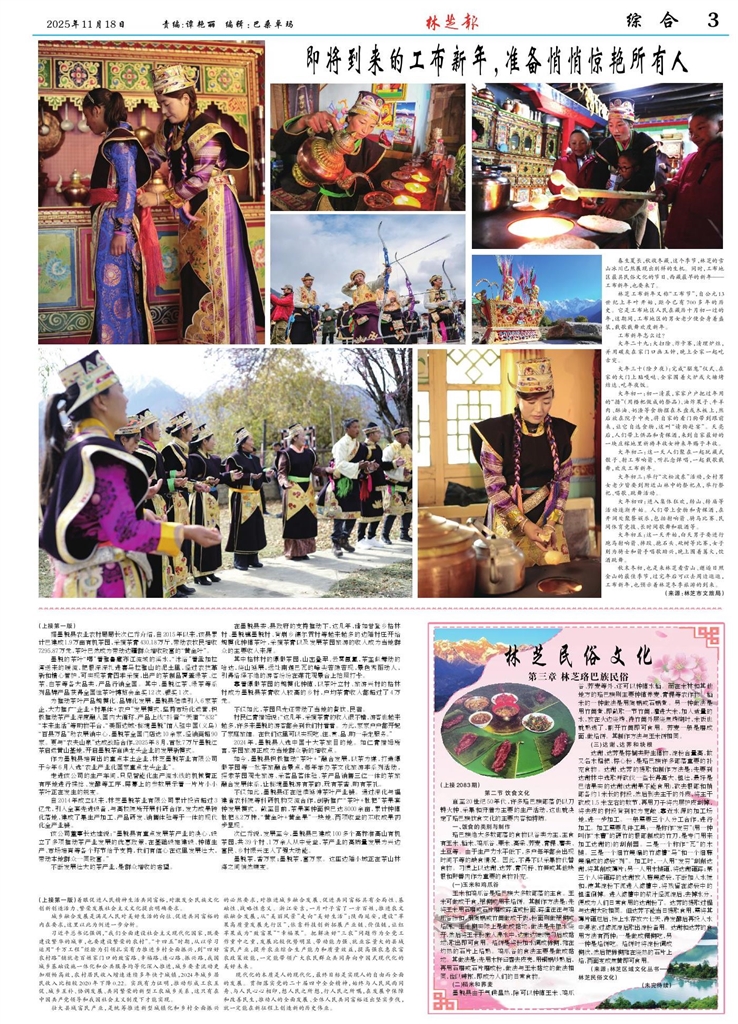 <div style='font-size: 22px!important;line-height: 34px!important;text-align: justify!important;color: #000!important'>即将到来的工布新年,准备悄悄惊艳所有人</div><div style='font-size: 14px!important;line-height: 22px!important;text-align: left!important;color: #777!important;margin-top: 20px;'>林芝报-汉文版  2025-11-18</div><div><img id='paperImg' style='max-width: 100%;height: auto' src='//img.founderfx.cn/epaper/202511/18/fd0ab17383bb4380909f6e954e7c0ccd/3.jpg' alt='' class='page-img'/></div><div style='font-size: 14px!important;line-height: 22px!important;text-align: center!important;color: #777!important;'><img src='//img.founderfx.cn/epaper/202511/18/fd0ab17383bb4380909f6e954e7c0ccd/03/106170_tanyl_1763347757883_s.jpg'style='display: block!important;margin: auto!important;max-width: 100%!important;'/><img src='//img.founderfx.cn/epaper/202511/18/fd0ab17383bb4380909f6e954e7c0ccd/03/106171_tanyl_1763347758188_s.jpg'style='display: block!important;margin: auto!important;max-width: 100%!important;'/><img src='//img.founderfx.cn/epaper/202511/18/fd0ab17383bb4380909f6e954e7c0ccd/03/106176_tanyl_1763347759674_s.jpg'style='display: block!important;margin: auto!important;max-width: 100%!important;'/><img src='//img.founderfx.cn/epaper/202511/18/fd0ab17383bb4380909f6e954e7c0ccd/03/106172_tanyl_1763347758467_s.jpg'style='display: block!important;margin: auto!important;max-width: 100%!important;'/><img src='//img.founderfx.cn/epaper/202511/18/fd0ab17383bb4380909f6e954e7c0ccd/03/106175_tanyl_1763347759328_s.jpg'style='display: block!important;margin: auto!important;max-width: 100%!important;'/><img src='//img.founderfx.cn/epaper/202511/18/fd0ab17383bb4380909f6e954e7c0ccd/03/106173_tanyl_1763347758750_s.jpg'style='display: block!important;margin: auto!important;max-width: 100%!important;'/><img src='//img.founderfx.cn/epaper/202511/18/fd0ab17383bb4380909f6e954e7c0ccd/03/106169_tanyl_1763347757616_s.jpg'style='display: block!important;margin: auto!important;max-width: 100%!important;'/></div><p>春生夏长,秋收冬藏,这个季节,林芝的雪山冰川已然展现出别样的生机。同时,工布地区最具民俗文化的节日、西藏最早的新年——工布新年,也要来了。</p><p>林芝工布新年又称“工布节”,自公元13世纪上半叶开始,距今已有700多年的历史。它是工布地区人民在藏历十月初一过的年,这期间,工布地区的男女老少便会身着盛装,载歌载舞欢度新年。</p><p>工布新年怎么过?</p><p>大年二十九:大扫除、炸卡赛,清理炉灶,并用碳灰在家门口画玉钟,晚上全家一起吃古突。</p><p>大年三十(除夕夜):完成“驱鬼”仪式、在家的大门上贴嘎哒、全家围着火炉或火塘烤结达、吃年夜饭。</p><p>大年初一:初一清晨,家家户户把过年用的“措”(用糌粑做成的祭品)、油炸果子、牛羊肉、酥油、奶渣等食物摆在木盘或木板上,然后放在院子中央,将自家的看门狗带到跟前来,让它自选食物,这叫“请狗赴宴”。天亮后,人们带上供品和青稞酒,来到自家最好的一块庄稼地里祈祷丰收女神来年赐予丰收。</p><p>大年初二:这一天人们聚在一起玩藏式骰子、射工布响箭、听扎念弹唱,一起载歌载舞,欢庆工布新年。</p><p>大年初三:举行“次松波东”活动,全村男女老少皆要到附近山林中的祭祀点,举行祭祀、唱歌、跳舞活动。</p><p>大年初四:进入集体狂欢,转山、转庙等活动逐渐开始。人们带上食物和青稞酒,在开阔处聚餐娱乐,包括射响箭、骑马比赛、民间体育竞技、长时间歌舞和敬酒等。</p><p>大年初五:这一天开始,白天男子要进行跑马射响箭、摔跤、抱石头、砍树等比赛,女子则为骑士和箭手唱歌助兴,晚上围着篝火,饮酒跳舞。</p><p>秋末冬初,也是来林芝看雪山、邂逅日照金山的最佳季节,过完年后可以去周边逛逛,工布新年,也预示着林芝冬季旅游的到来。</p><p>(来源:林芝市文旅局)</p>