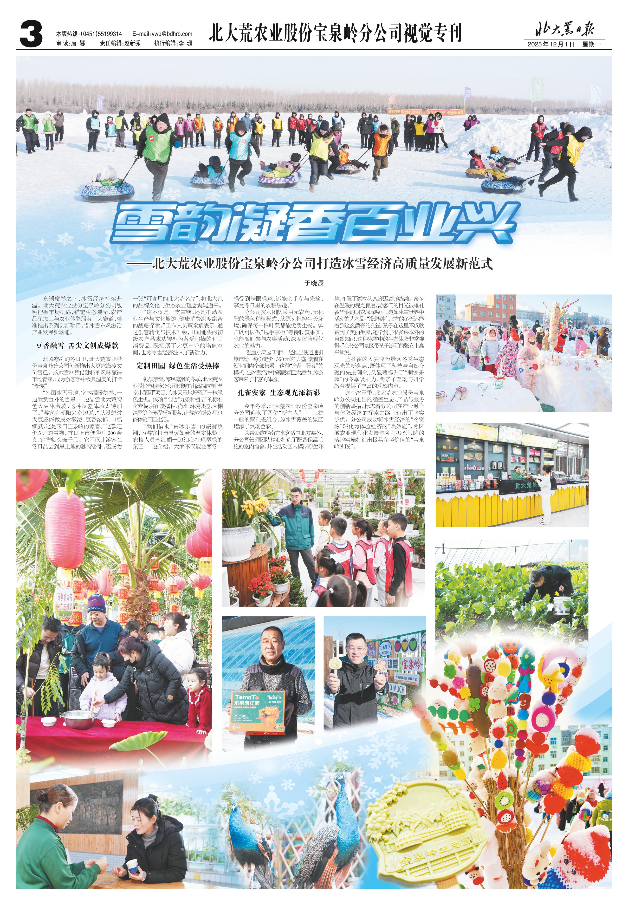 这个冰雪季,北大荒农业股份宝泉岭分公司推出的涵盖生态、产品与服务的创新举措,标志着分公司在产业融合与体验经济的探索之路上迈出了坚实步伐。分公司成功将冰雪经济的“冷资源”转化为体验经济的“热效应”,为区域农业现代化发展与乡村振兴战略的落地实施打造出极具参考价值的“宝泉岭实践”。