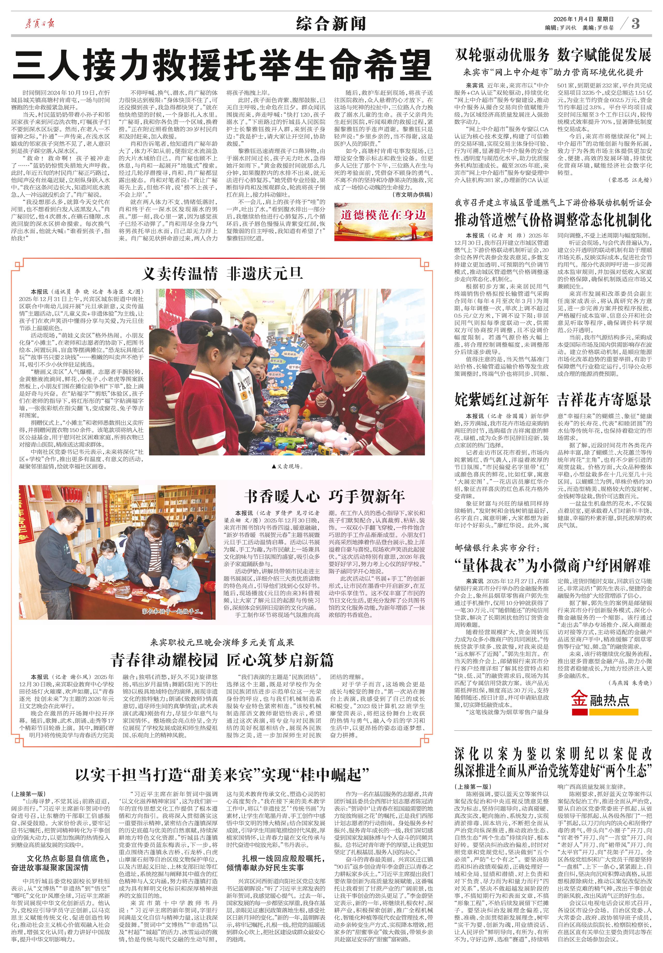 <div style='font-size: 22px!important;line-height: 34px!important;text-align: justify!important;color: #000!important'>以实干担当打造“甜美来宾”实现“桂中崛起”</div><div style='font-size: 16px!important;line-height: 28px!important;text-align: justify;color: #777!important;margin-top: 20px;'>——习近平主席新年贺词激励来宾干部群众跃马扬鞭把宏伟愿景变成美好现实</div><div style='font-size: 14px!important;line-height: 22px!important;text-align: left!important;color: #777!important;margin-top: 20px;'>来宾日报  □ 本报记者 韦 鑫 通讯员 何玲玲 韦 苏 谭贵丹 蓝文欣  2026-01-04</div><div><img id='paperImg' style='max-width: 100%;height: auto' src='//img.founderfx.cn/epaper/202601/03/f22cb0acd3fe4fbdbeb983ebdee424da/3.jpg' alt='' class='page-img'/></div><p> </p><p> “柴米油盐、三餐四季,每个‘小家’热气腾腾,中国这个‘大家’就蒸蒸日上。”“让我们拿出跃马扬鞭的勇气,激发万马奔腾的活力,保持马不停蹄的干劲,一起为梦想奋斗、为幸福打拼,把宏伟愿景变成美好现实。”新年前夕,国家主席习近平发表二〇二六年新年贺词,我市广大干部群众认真收听收看,深受触动。 大家一致认为,新年贺词既是温暖人心的美好祝福,也是催人奋进的号角。新征程呼唤新担当,新发展面临新契机,要进一步提高政治站位,切实把思想和行动统一到党中央的部署要求上来,以更为饱满的精神状态、更加务实的工作作风,全力建设“五美”现代化品质之城,打造“甜美来宾”、实现“桂中崛起”。 </p><p> 牢记嘱托坚决守好“糖罐子”,乘势而上推动高质量发展</p><p> 2025年12月31日晚,广西来宾东糖凤凰有限公司厂区内灯火通明,生产车间机器轰鸣。19时,国家主席习近平通过中央广播电视总台和互联网,发表二〇二六年新年贺词。该公司干部职工集体收听收看,认真聆听每一句殷切嘱托。 </p><p> 2023年习近平总书记到来宾视察时,在该公司勉励职工加大科技创新力度、推动糖业高质量发展的殷殷嘱托,始终是东糖凤凰人砥砺前行的精神指引。恰逢“十四五”收官,公司全体职工牢记嘱托,在助农增收、数智升级、循环经济、产业链延伸等领域持续发力。目前,该公司年处理甘蔗达120万吨、产机制糖16万吨,逐步实现高端化、智能化、绿色化发展。</p><p> 该公司制炼车间主任助理蒙荣燊表示,当听到“科技与产业深度融合,创新成果竞相涌现”时,他很是激动。过去一年,制炼车间投入使用丙糖连煮连助系统,煮炼收回率由88.6%提升至91.5%,一天能多产白砂糖280吨。“新的一年,我们将持续以实干夯实产业链根基,以创新驱动高附加值转型,发展绿色循环经济,以‘甜蜜事业’高质量发展为中国式现代化贡献力量。”</p><p> 该公司党委书记罗斌表示,公司将时刻牢记嘱托、感恩奋进,积极推进高端化、智能化、绿色化转型,坚持创新赋能推动糖业提质增效,守住食糖安全生命线,建立更加紧密的利益共同体,推进绿色生产,以“时时放心不下”的责任感,守好“糖罐子”,做好“甜蜜事”,用责任与匠心守护舌尖上的安全与甜蜜,一起为梦想奋斗。 </p><p> “山海寻梦,不觉其远;前路迢迢,阔步而行。”习近平主席新年贺词中的奋进号召,让东糖的干部职工倍感振奋、深受鼓励。大家纷纷表示,要牢记总书记嘱托,把贺词精神转化为干事创业的强大动力,以更加饱满的热情投入到糖业高质量发展的实践中。</p><p> 文化热点彰显自信底色,奋进故事凝聚家国深情</p><p> 中共忻城县委党校副校长罗桂恒表示,从“文博热”“非遗热”到“悟空”“哪吒”文化IP风靡全球,习近平主席新年贺词展现中华文化创新活力。他认为,党校应引导学员守正创新,以马克思主义赋能传统文化、促进创造性转化;推动社会主义核心价值观融入社会治理,增强文化认同;着力讲好中国故事,提升中华文明影响力。</p><p> “习近平主席在新年贺词中强调‘以文化滋养精神家园’,这为我们新一年的宣传思想文化工作提供了根本遵循和方向指引。我将深入贯彻落实这一重要指示精神,紧密结合古蓬镇深厚的历史底蕴与优美的自然禀赋,持续深耕地方特色文化资源。”忻城县古蓬镇党委宣传委员蓝东梅表示,下一步,将重点围绕古蓬镇永吉桥、石龙桥、白虎山摩崖石刻等自治区级文物保护单位,以及古思起义旧址、上林支部旧址等红色遗址,系统挖掘与阐释其中蕴含的红色精神与人文内涵,努力将古蓬镇打造成为具有鲜明文化标识和深厚精神滋养的文旅目的地。 </p><p> 来宾市第十中学教师韦丹说:“习近平主席的新年贺词,字里行间满是文化自信与精神力量,这让我深受鼓舞。”贺词中“文博热”“非遗热”以及“村超”“城超”的活力、冰雪运动的激情,恰是传统与现代交融的生动写照,这与美术教育传承文化、塑造心灵的初心高度契合。“我在接下来的美术教学工作中,将以‘非遗技艺’‘传统书画’为素材,让学生在笔墨丹青、手工创作中感悟中华文明的博大精深;结合国家发展成就,引导学生用画笔描绘时代风貌,厚植家国情怀,让青春力量在文化传承与时代奋进中绽放光彩。”韦丹表示。</p><p> 扎根一线回应殷殷嘱托,倾情奉献办好民生实事 </p><p> 兴宾区河西街道向阳社区党总支部书记蓝朝晖说:“听了习近平主席发表的新年贺词,我感觉暖心提气。过去一年,国家发展的每一步都坚实厚重,我身在基层,亲眼见证惠民政策落地生根,感受社区日新月异