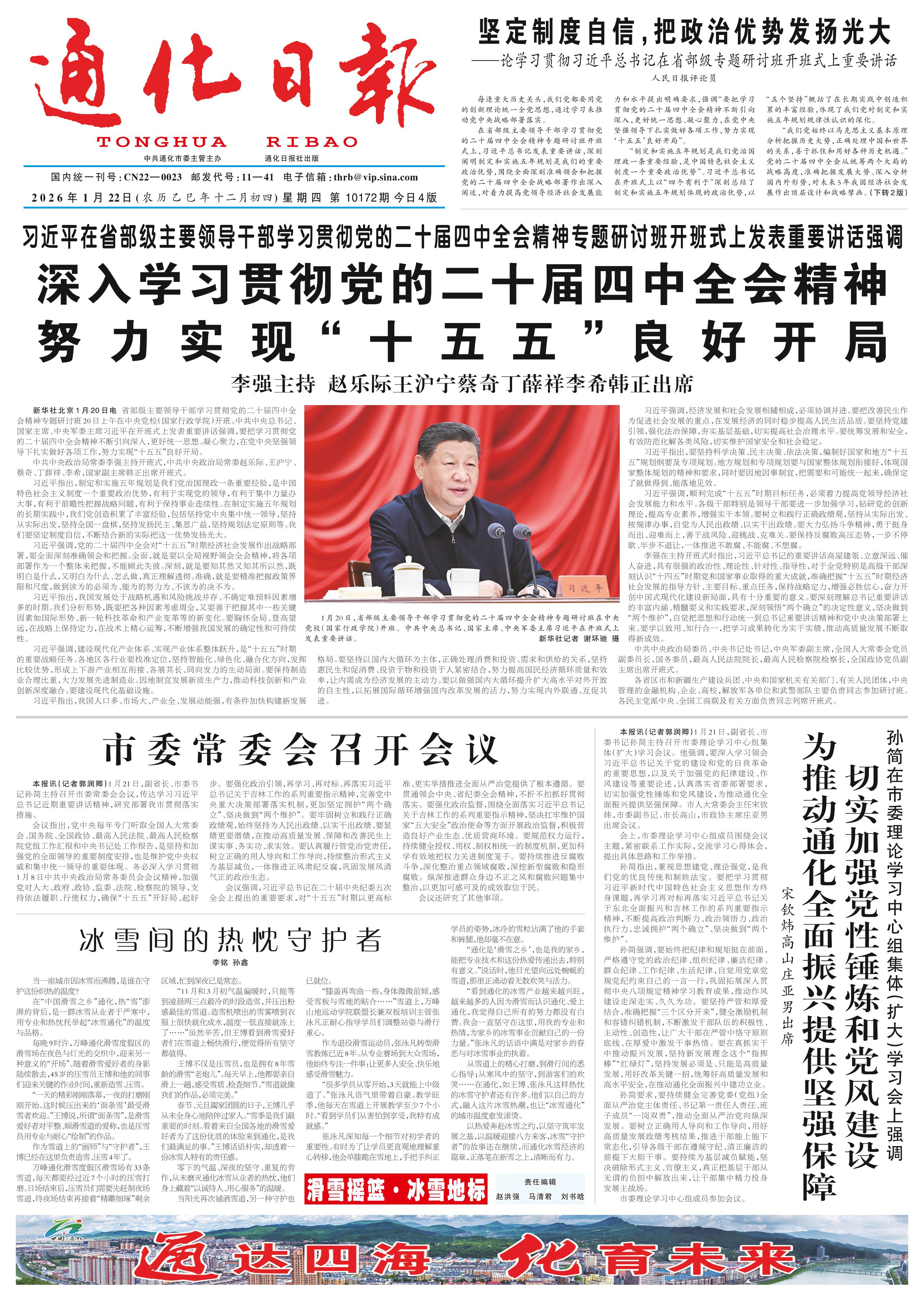 为推动通化全面振兴提供坚强保障</div><div style='font-size: 16px!important;line-height: 28px!important;text-align: justify;color: #777!important;margin-top: 20px;'>宋钦炜高山庄亚男出席</div><div style='font-size: 14px!important;line-height: 22px!important;text-align: left!important;color: #777!important;margin-top: 20px;'>通化日报  2026-01-22</div><div><img id='paperImg' style='max-width: 100%;height: auto' src='//img.founderfx.cn/epaper/202601/22/8297f95257724183bcd606b250279022/1.jpg' alt='' class='page-img'/></div><p>本报讯(记者郭润卿)1月21日,副省长、市委书记孙简主持召开市委理论学习中心组集体(扩大)学习会议。他强调,要深入学习领会习近平总书记关于党的建设和党的自我革命的重要思想,以及关于加强党的纪律建设、作风建设等重要论述,认真落实省委部署要求,切实加强党性锤炼和党风建设,为推动通化全面振兴提供坚强保障。市人大常委会主任宋钦炜,市委副书记、市长高山,市政协主席庄亚男出席会议。</p><p>会上,市委理论学习中心组成员围绕会议主题,紧密联系工作实际,交流学习心得体会,提出具体思路和工作举措。</p><p>孙简指出,重视思想建党、理论强党,是我们党的优良传统和制胜法宝。要把学习贯彻习近平新时代中国特色社会主义思想作为终身课题,再学习再对标再落实习近平总书记关于东北全面振兴和吉林工作的系列重要指示精神,不断提高政治判断力、政治领悟力、政治执行力,忠诚拥护“两个确立”、坚决做到“两个维护”。</p><p>孙简强调,要始终把纪律和规矩挺在前面,严格遵守党的政治纪律、组织纪律、廉洁纪律、群众纪律、工作纪律、生活纪律,自觉用党章党规党纪约束自己的一言一行,巩固拓展深入贯彻中央八项规定精神学习教育成果,推动作风建设走深走实、久久为功。要坚持严管和厚爱结合,准确把握“三个区分开来”,健全激励机制和容错纠错机制,不断激发干部队伍的积极性、主动性、创造性,让广大干部在严管中恪守原则底线、在厚爱中激发干事热情。要在真抓实干中推动振兴发展,坚持新发展理念这个“指挥棒”“红绿灯”,坚持发展必须是、只能是高质量发展,用好改革关键一招,统筹好高质量发展和高水平安全,在推动通化全面振兴中建功立业。</p><p>孙简要求,要持续健全完善党委(党组)全面从严治党主体责任、书记第一责任人责任、班子成员“一岗双责”,推动全面从严治党向纵深发展。要树立正确用人导向和工作导向,用好高质量发展政绩考核结果,推进干部能上能下常态化,引导各级干部在遵规守纪、清正廉洁的前提下大胆干事。要持续为基层减负赋能,坚决破除形式主义、官僚主义,真正把基层干部从无谓的负担中解放出来,让干部集中精力投身发展主战场。</p><p>市委理论学习中心组成员参加会议。</p>