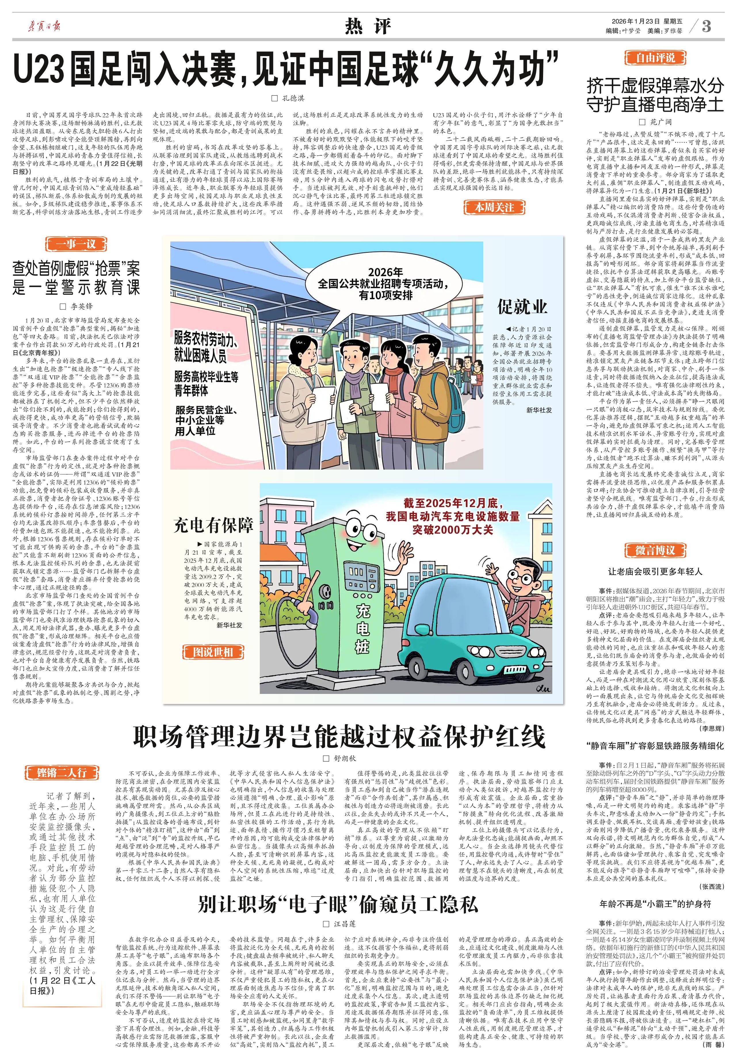 <div style='font-size: 22px!important;line-height: 34px!important;text-align: justify!important;color: #000!important'>充电有保障</div><div style='font-size: 14px!important;line-height: 22px!important;text-align: left!important;color: #777!important;margin-top: 20px;'>来宾日报  2026-01-23</div><div><img id='paperImg' style='max-width: 100%;height: auto' src='//img.founderfx.cn/epaper/202601/22/371a0fa2233944d1a4a2283ea95c31f5/3.jpg' alt='' class='page-img'/></div><div style='font-size: 14px!important;line-height: 22px!important;text-align: center!important;color: #777!important;'><img src='//img.founderfx.cn/epaper/202601/22/371a0fa2233944d1a4a2283ea95c31f5/03/097891-【3】图说世相—图片97891_s.jpg'style='display: block!important;margin: auto!important;max-width: 100%!important;'/> 国家能源局1月21日宣布,截至2025年12月底,我国电动汽车充电设施数量达2009.2万个,突破2000万大关,建成全球最大电动汽车充电网络,可支撑超4000万辆新能源汽车充电需求。
